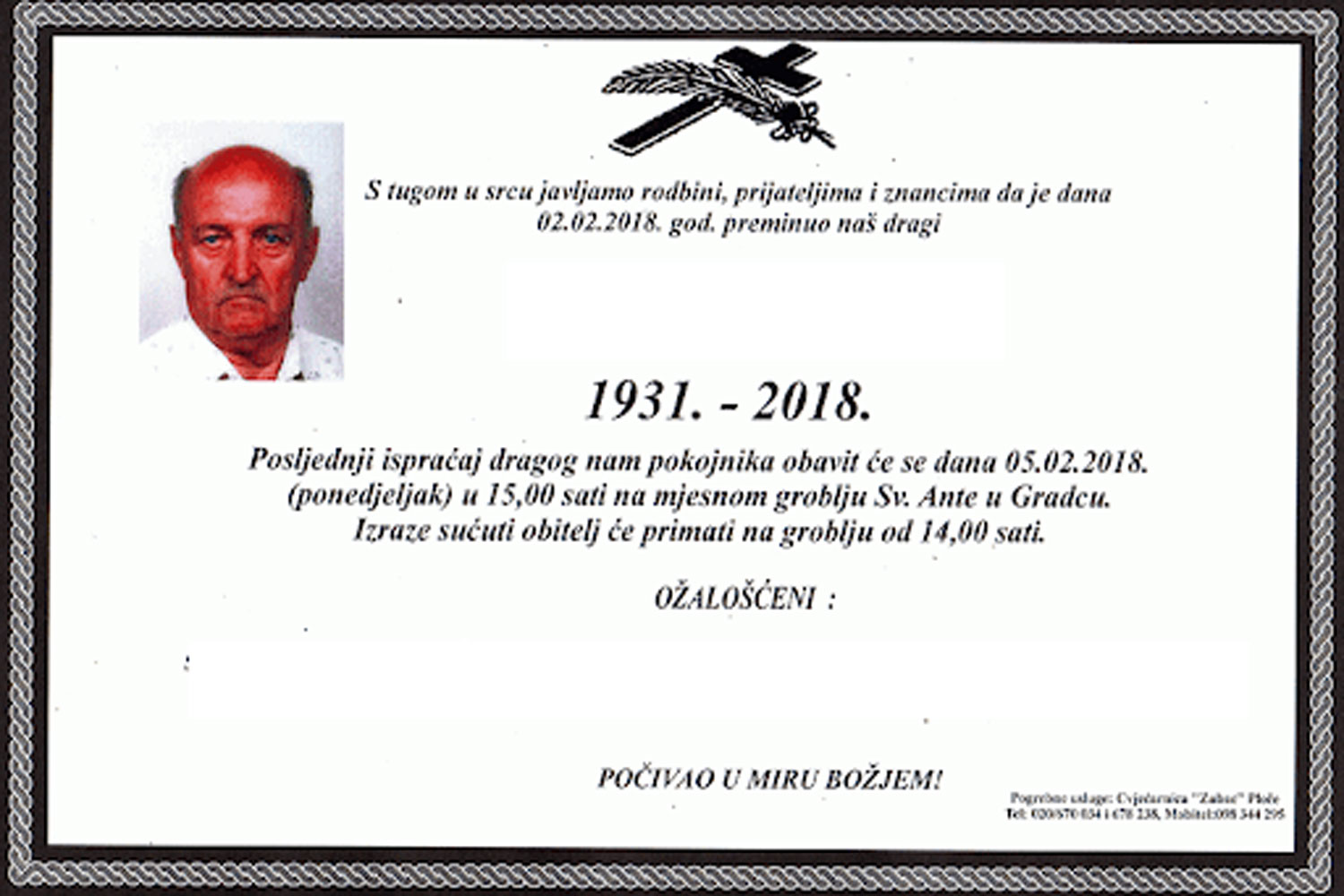 Oglašavanje - oglasi u nacionalnom, lokalnom i dnevnom tisku, osmrtnice na oglasnim tablama, radiju, obavijesti o smrti, posljednji pozdravi, sjećanja i zahvale.